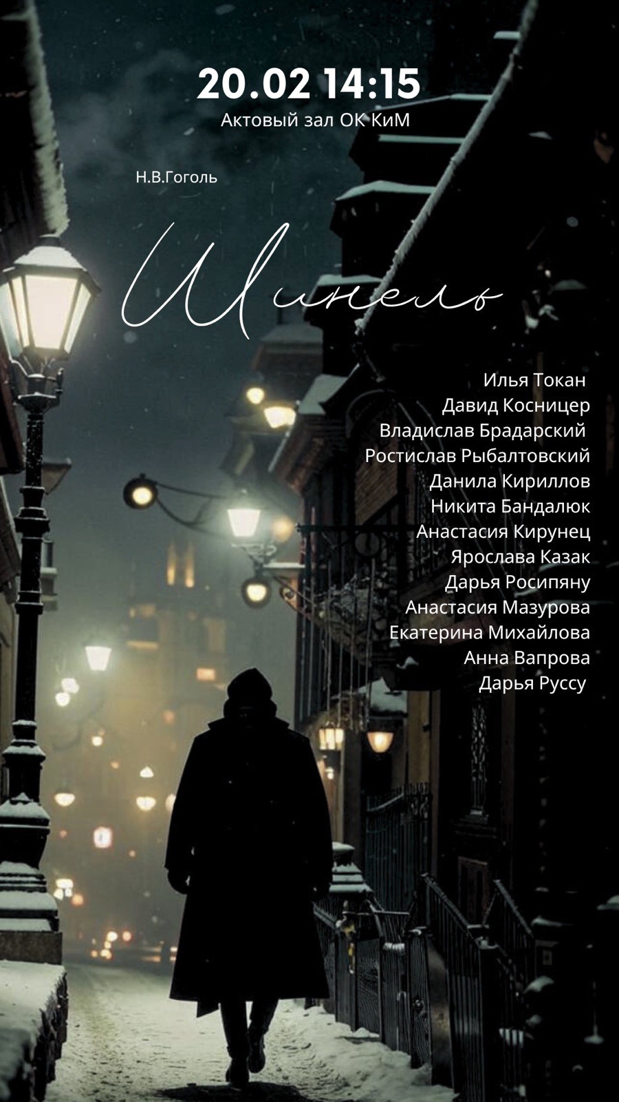 В ОК «Кирилл и Мефодий» состоялось грандиозное событие – постановка спектакля «Шинель» по одноименной повести Н.В.Гоголя.
